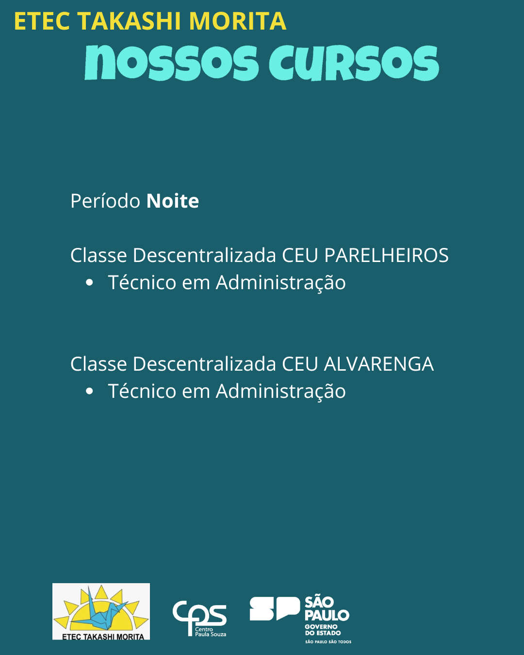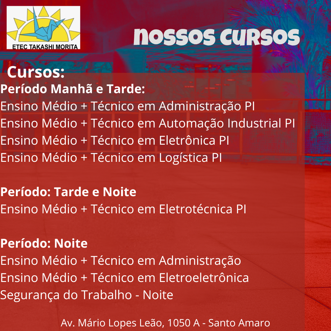 Ensino Médio Integrado Períodos: • manhã • tarde📌 Administração PI📌 Eletrônica PI📌 Automação Industrial PI📌 Logística PI Períodos: • tarde • noite📌 Eletrotécnica PI Períodos: • noite📌 Administração (mtec)📌 Eletroeletrônica (mtec) Curso Técnico: 📌 Segurança […]